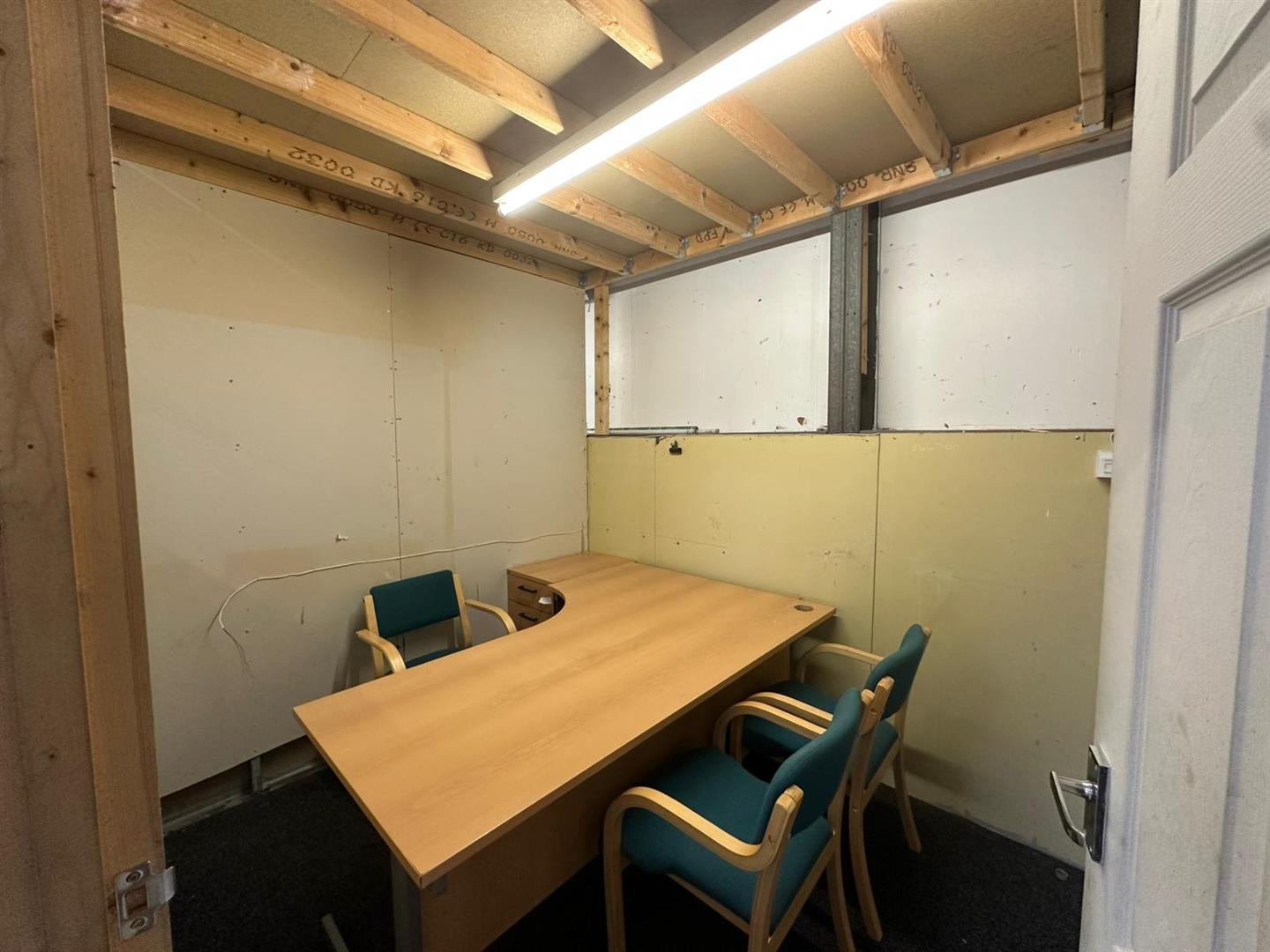The unit is largely open plan with an office area and some extra mezzanine storage above. The roller shutter measures 2.9m wide and 3.4m high. The roller shutter currently has internal doors across it to allow the shutters to remain open with the unit still being secure, but these can be removed if vehicular access is required. The unit benefits from high eaves ranging from 4.3m at the gables to 5.5m at the peak.