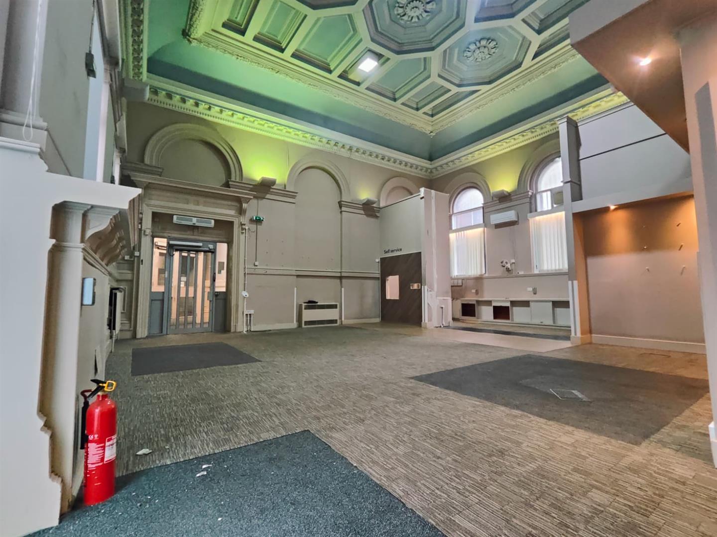 The building features an impressive open-plan main hall with striking architectural detailing and high ceilings, complemented by multiple private rooms, storage areas, and staff facilities, providing a versatile layout suitable for a wide range of commercial uses. The property is the ground floor only.