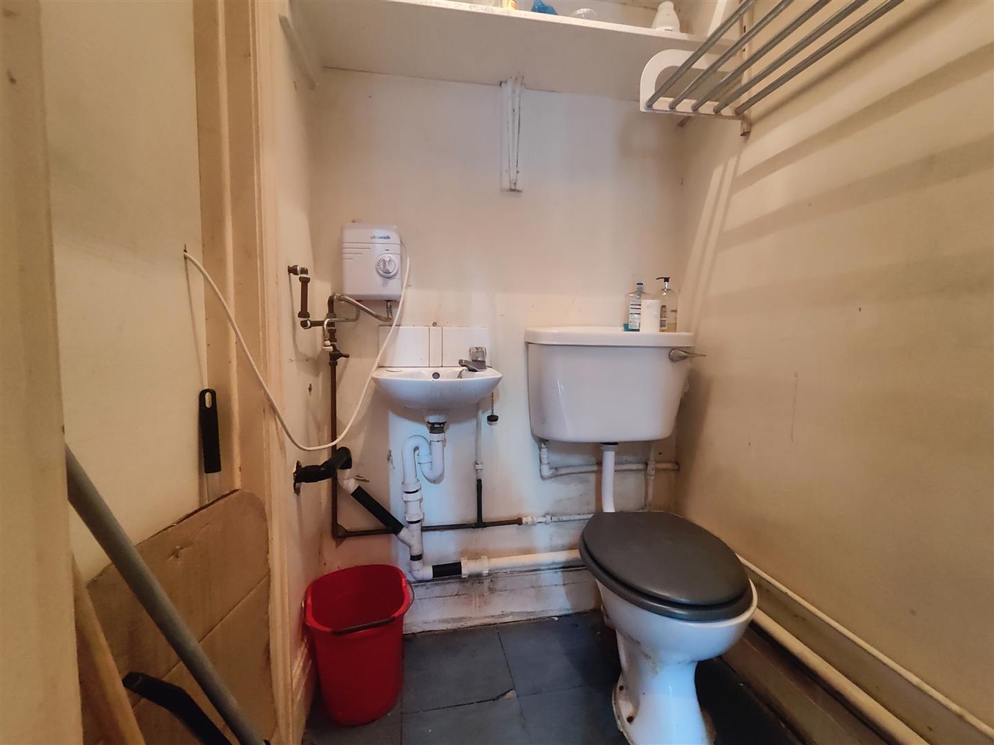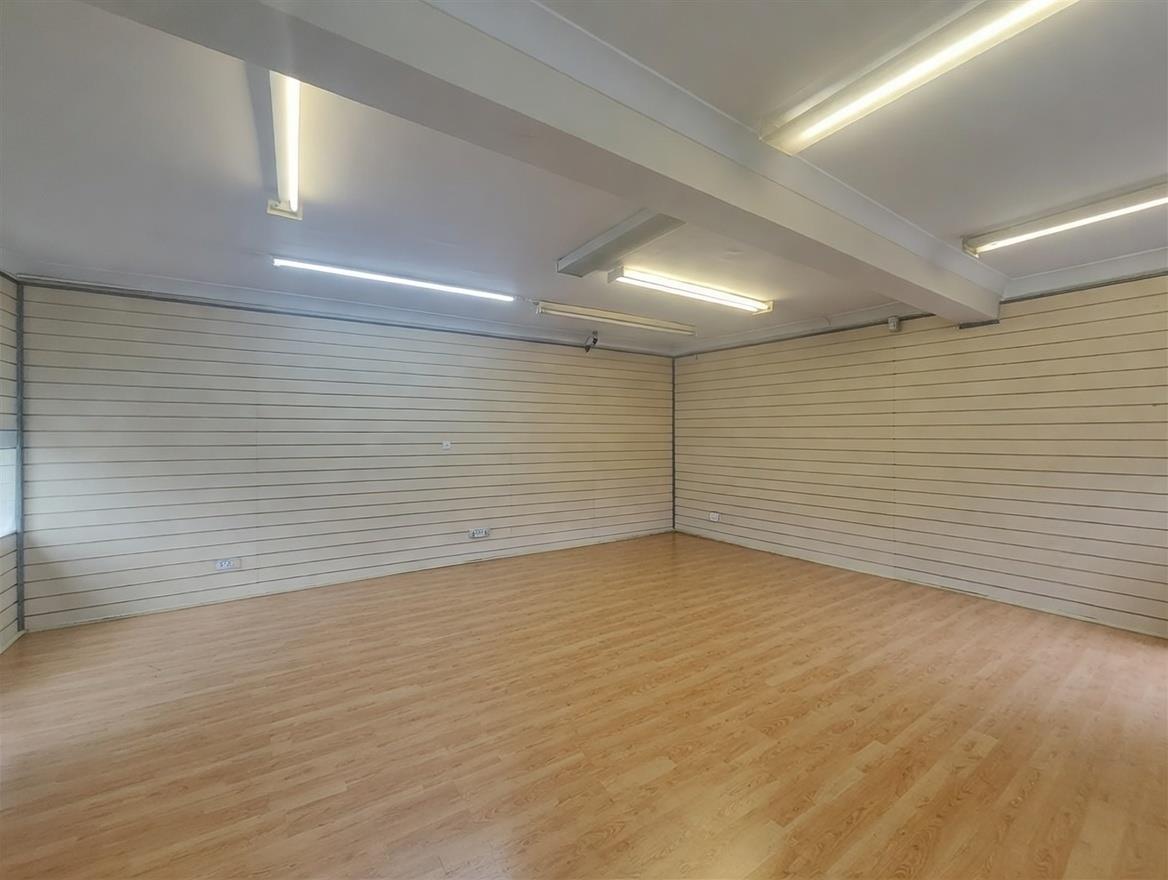 Internally, the shop is largely open plan with laminate flooring, perimeter slat-wall panelling ready for merchandising, ample fluorescent lighting and multiple power sockets, making it ideal for a wide range of retail or service-led uses (Use Class E), such as boutique retail, salon, studio or office/showroom. To the rear there is a small staff/storage area with WC and wash-hand basin, providing practical welfare facilities.